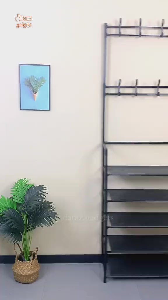 The Multi-Function Shoes Rack with Hanger is a versatile storage solution designed to keep your shoes, clothes, and accessories organized in one compact space. Made from high-quality metal, this rack combines durability and style, making it perfect for bedrooms, living rooms, or entryways.